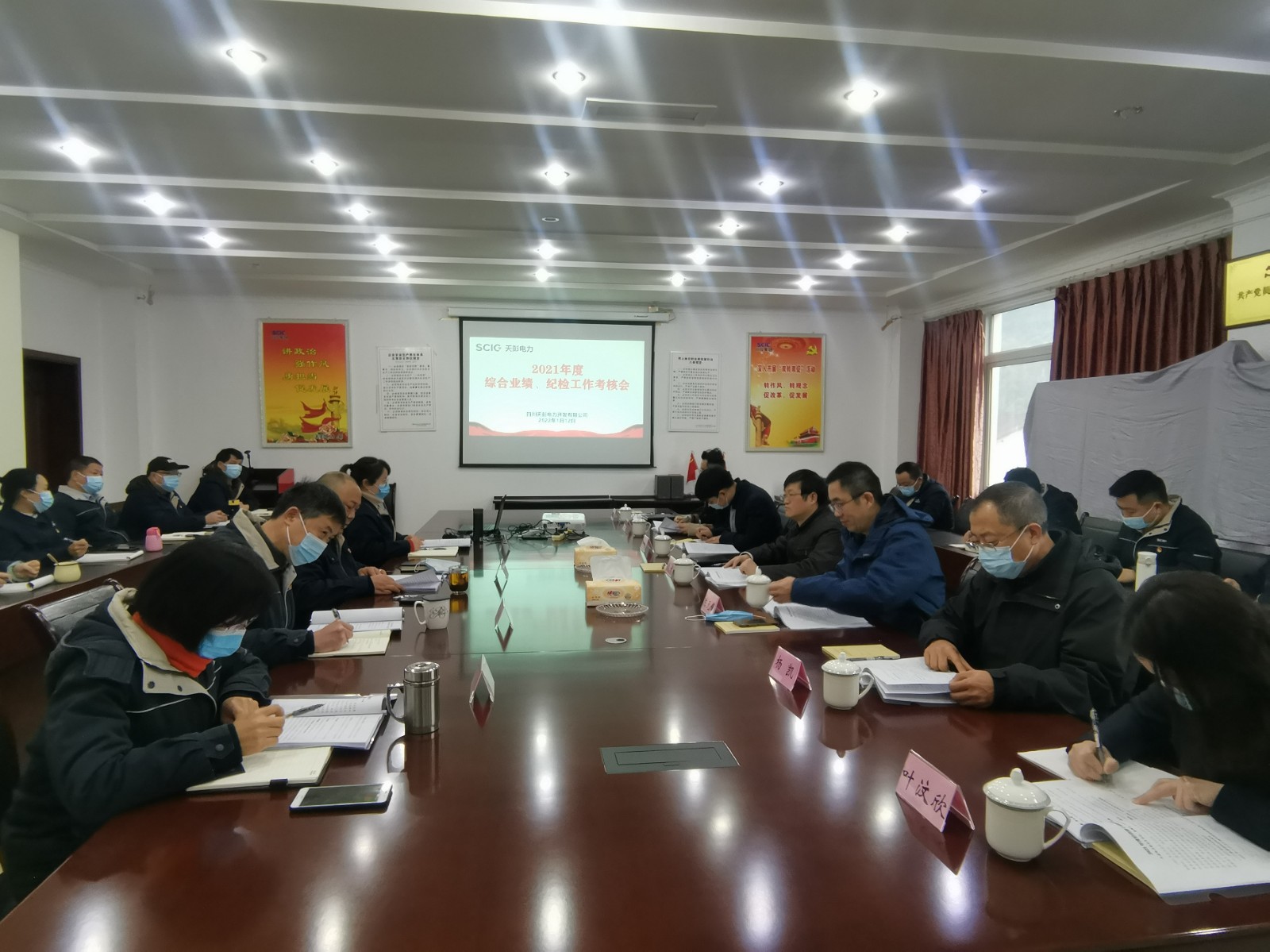 聽取匯報后,考核組組長楊平對2021年度天彭電力總體工作成效表示了充分肯定,并就其中突出貢獻和特色亮點作了精妙點評:一是鼓足了“勁頭”,在生產經營上實現了新突破,抗疫防線筑牢筑實,安全環保形勢持續穩定向好,生產經營再創新高;二是爭當了“排頭”,在黨史學習教育上取得了新進步,支部建設更趨規范化,小莊工作室剪紙作品在四川省國有企業剪紙書畫攝影藝術展上大放異彩;三是握緊了“拳頭”,在年度重點工作上得到了新提高,出色完成好電力和飲用水保供任務彰顯國企擔當,合規管理、依法治企、三項制度改革等工作水平顯著提高。