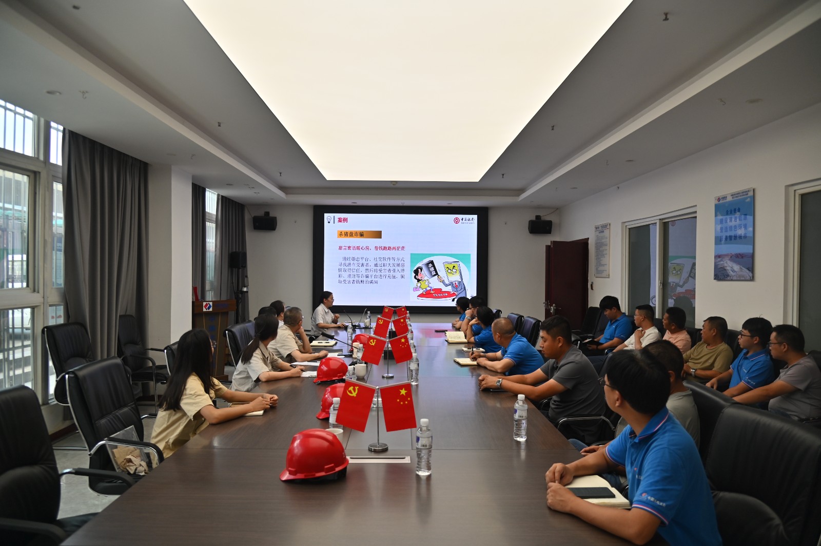 為確保宣傳實(shí)效,在宣傳活動(dòng)月期間,公司積極探索運(yùn)用多元化宣傳載體進(jìn)行了系列宣傳:一是精心篩選了圖文并茂、通俗易懂的宣傳資料,在人員較多的公司微信工作群、建設(shè)安全工作群、水情共享信息群上共發(fā)布了五期的相關(guān)宣傳。確保防范非法金融知識(shí)直達(dá)每一位公司員工及一線(xiàn)工友。二是充分發(fā)揮公共視頻播放系統(tǒng)的作用,利用公司樓宇電視循環(huán)播放宣傳片近200次。時(shí)刻提醒員工擦亮雙眼,遠(yuǎn)離陷阱,營(yíng)造了濃厚的宣傳氛圍。三是聯(lián)合中國(guó)銀行金曦苑支行,針對(duì)防非信息獲取渠道相對(duì)有限、相關(guān)金融知識(shí)可能更為薄弱的一線(xiàn)農(nóng)民工工友,為其帶來(lái)了一場(chǎng)“接地氣、聽(tīng)得懂、用得上”的防范非法金融知識(shí)宣講,并現(xiàn)場(chǎng)發(fā)放宣傳手冊(cè)、解答疑問(wèn)。有效打通了金融風(fēng)險(xiǎn)防范宣傳的“最后一公里”,將安全知識(shí)送到了最需要的人群身邊,受到了現(xiàn)場(chǎng)人員的熱烈歡迎和高度評(píng)價(jià)。