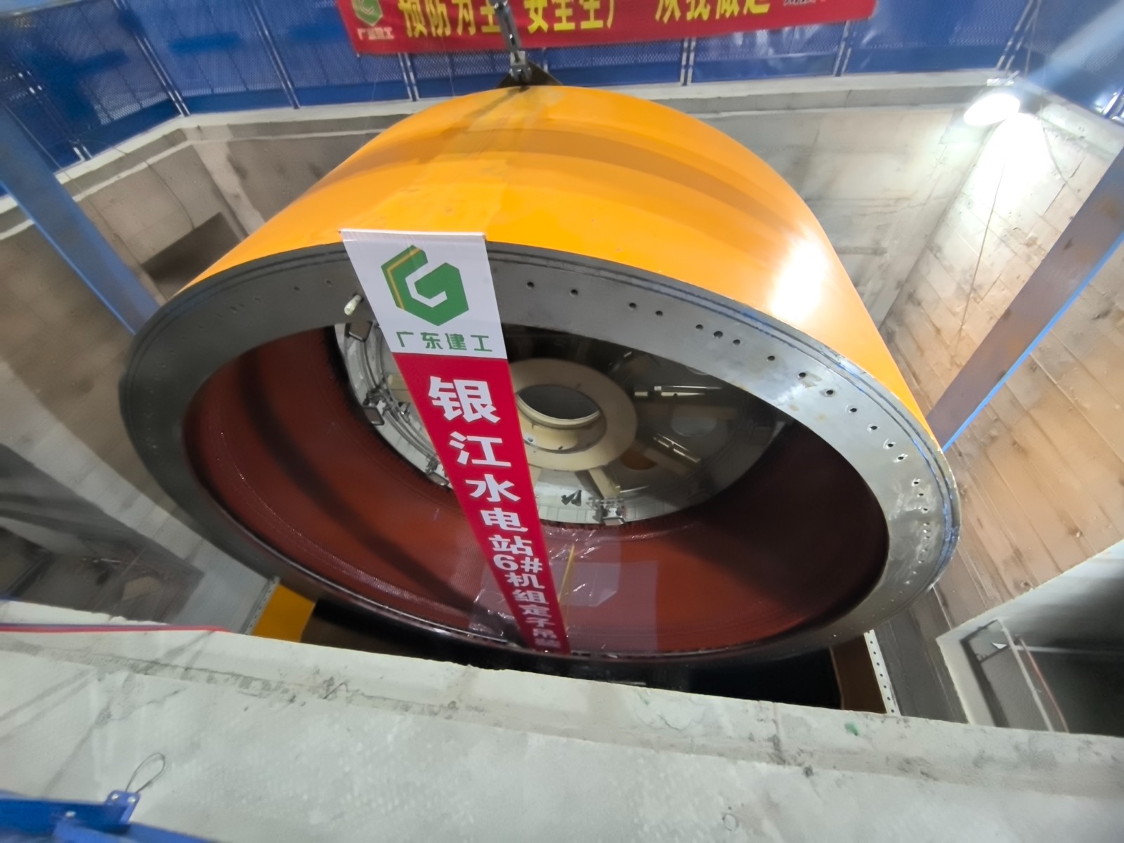【攀水電】銀江水電站6號機組定子吊裝成功